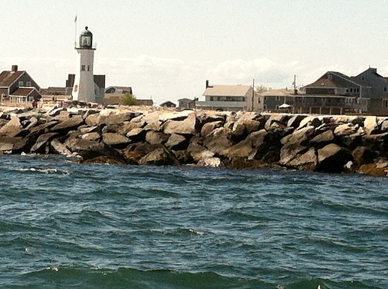 An impressive breakwater lines the entrance to Scituate Harbor.