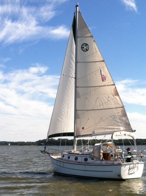 With a favorable tide, it doesn’t take much wind to sail the muddy water of Elk River.