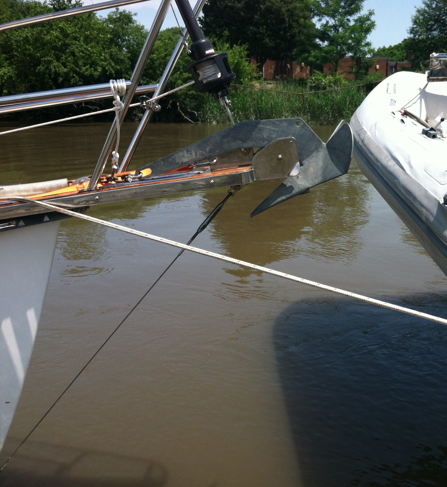 So there’s a quick U-turn to stand off to the side for a few moments against the current while this gal clears the bridge, let her pass, then cut across a not inconsiderable wake and back on our way.