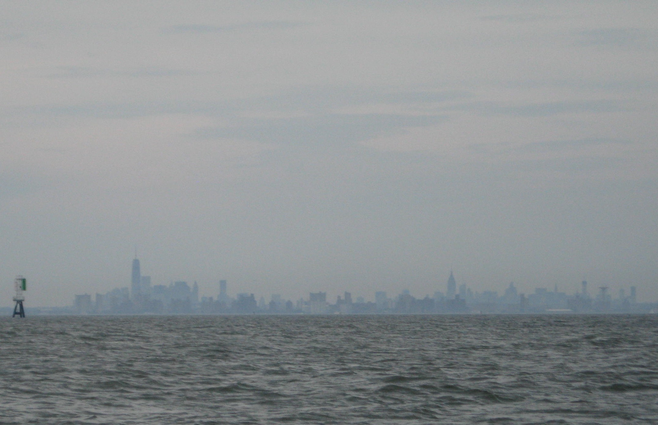 Still out front, Gertie showed the way through “False Sandy Hook Channel,” shaving precious minutes off the trip. Then at Green 11, the turn to port yields a dramatic view, undiminished by haze.