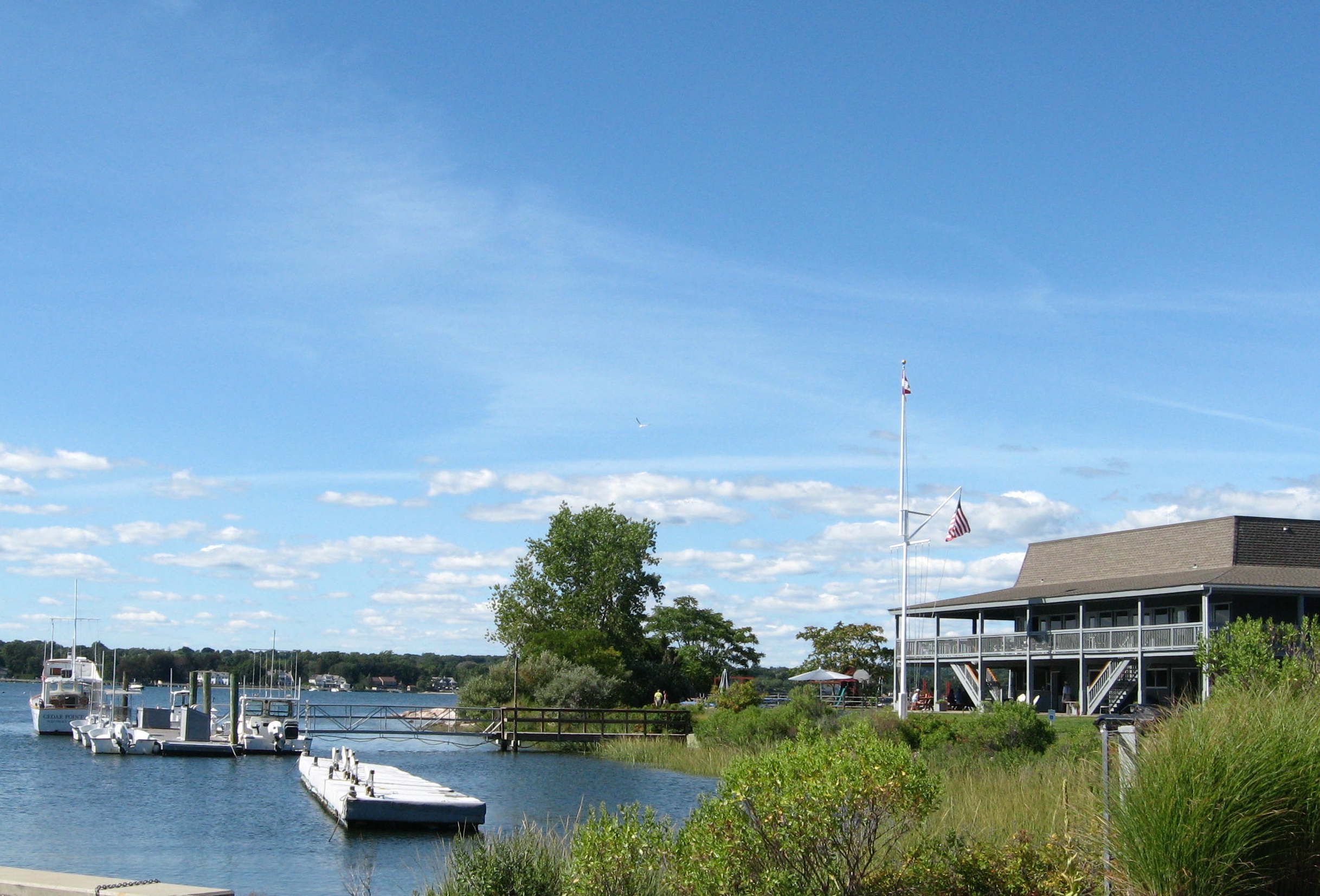 Which Steadfast was able to do, though not without some momentary lack of clarity on the part of her crew. Coming in from the Sound, one sees way more reds and greens than shown on the chart. It turns out several mark a side channel to starboard. And lest there be doubt, the main channel is narrow, barely wide enough for two boats to pass. Likewise the turn into the dredged basin that is home to Cedar Point YC. There’s plenty of water in there, the clubhouse porch provides panoramic views to the Sound and both members and staff all are welcoming.