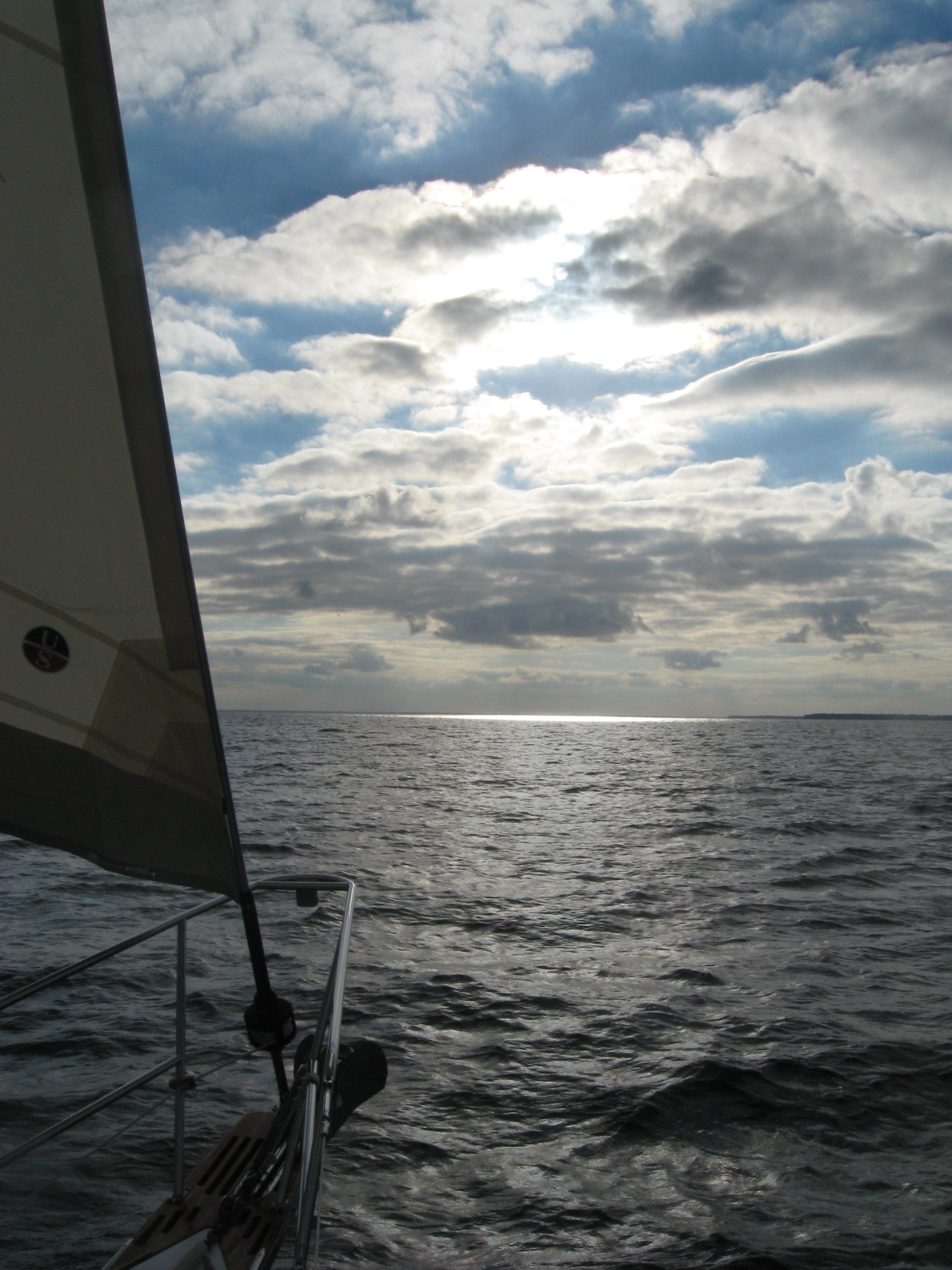 By 1400, she’s running down the broad Bay River to skirt Maw Point Shoal and join the Neuse. There’s more east in that northerly now. It’s coming over the Outer Banks with growing fervor. It’s become a tad lumpy out here but Oriental beckons.