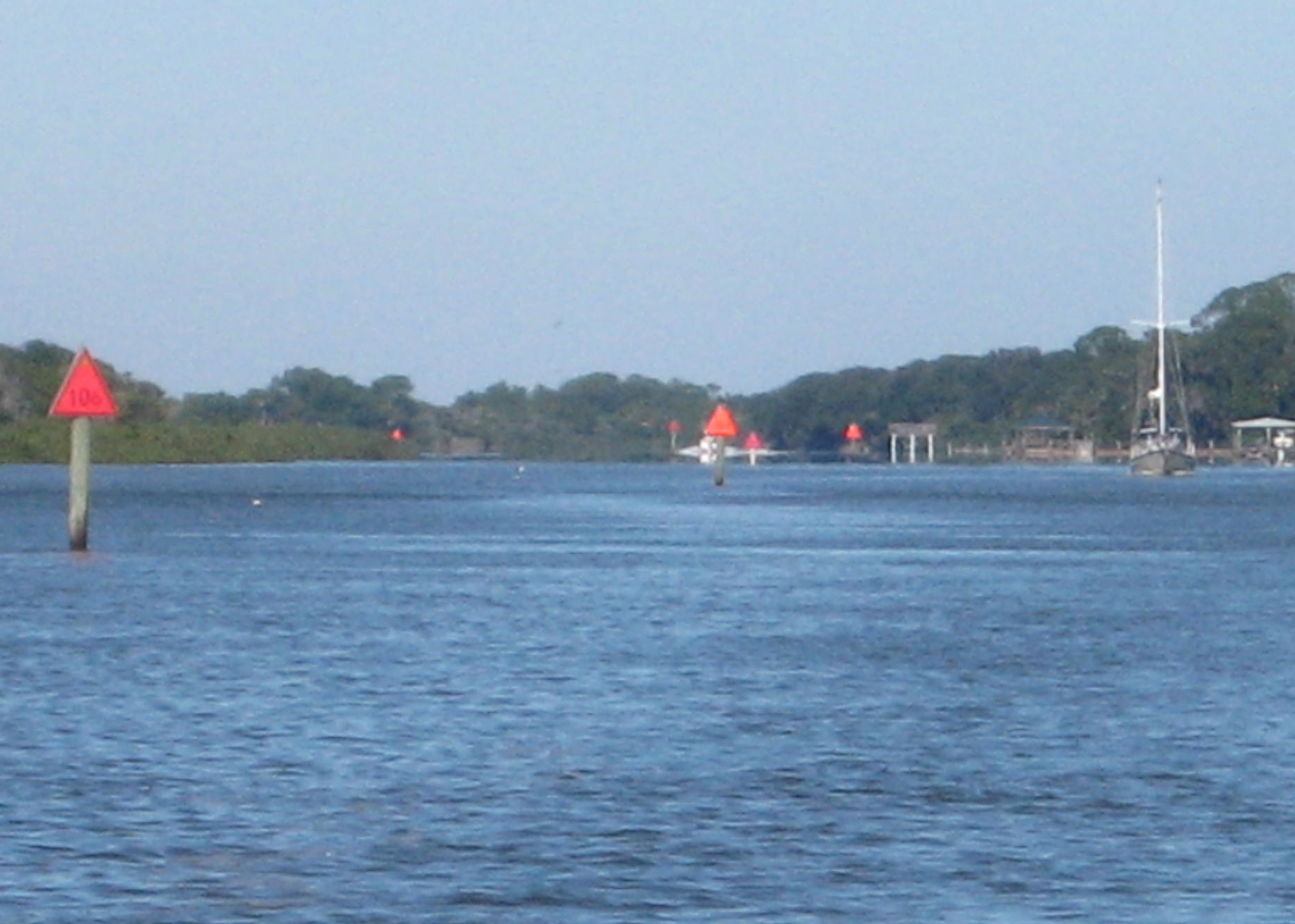 The twelve-mile cut through Ponte Verdra gives Ray-the-Smart-Pilot a chance to earn his keep. It’s long and straight. He troubles with the heading, even in these calm waters, but his performance at the helm is at least acceptable for the most part. It’s good to have him there to spell the helmsperson.