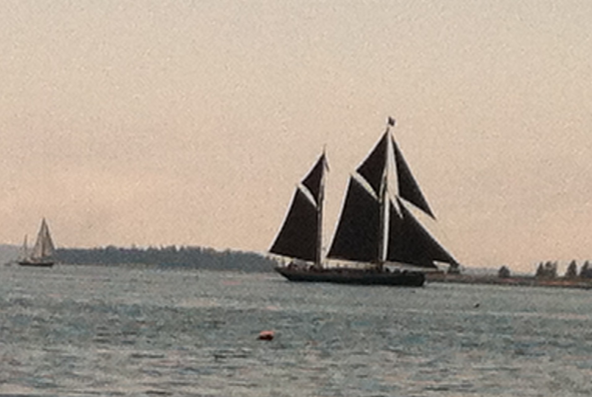 One of Maine Windjammer fleet, this gaff-rigged schooner tacks past us on our way down Eggemoggin Reach.