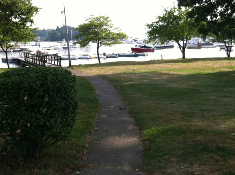 The typically quaint shopping district, including super market, is just up this path from the harbor.